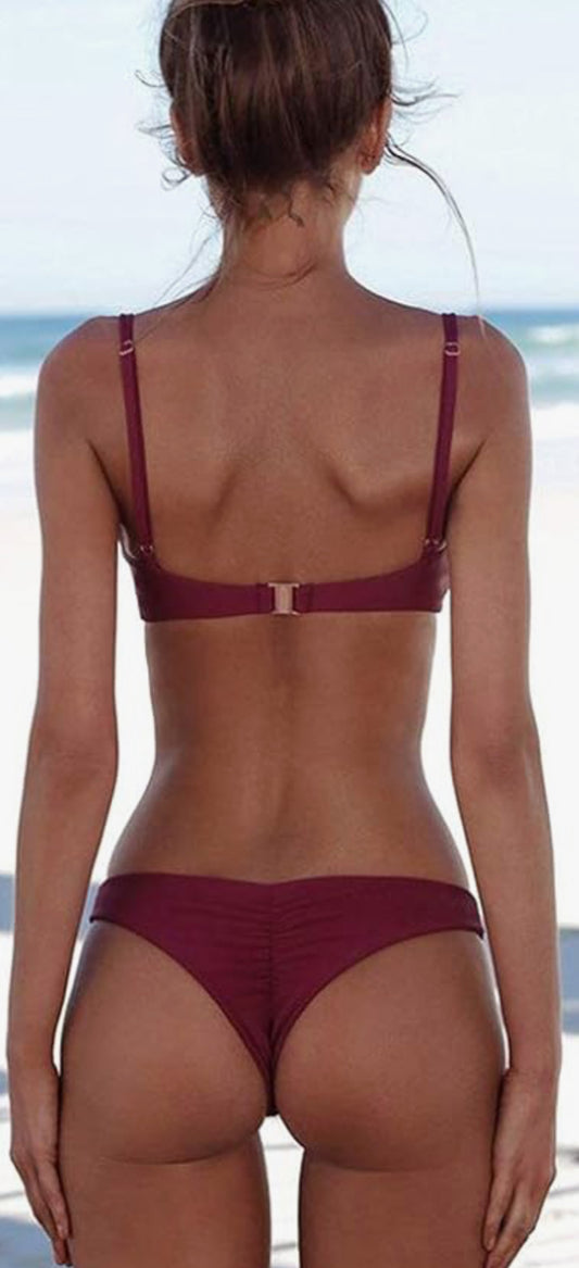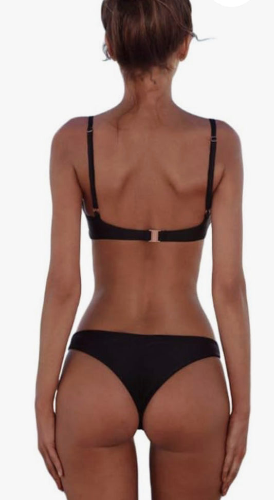 Shekini women's two piece frilly bikini set with padded top and tanga style bottoms