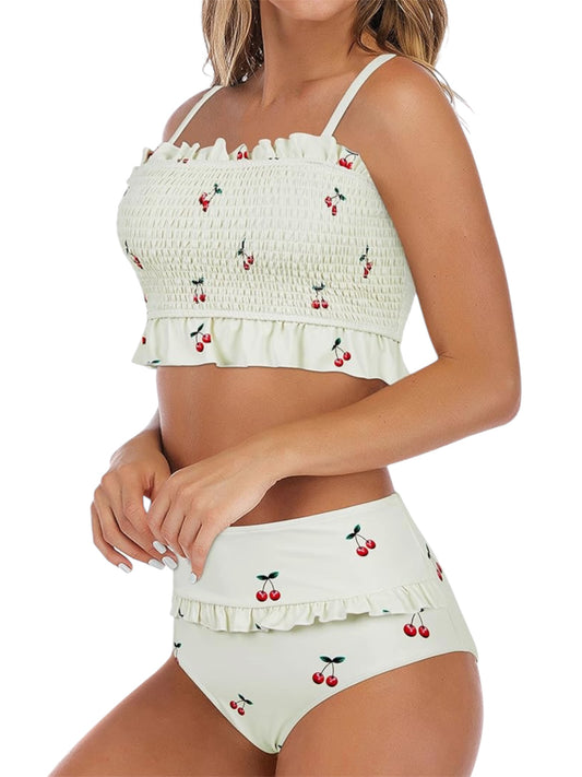 Ruched Ruffles adjustable Straps High Waist Bikini Set