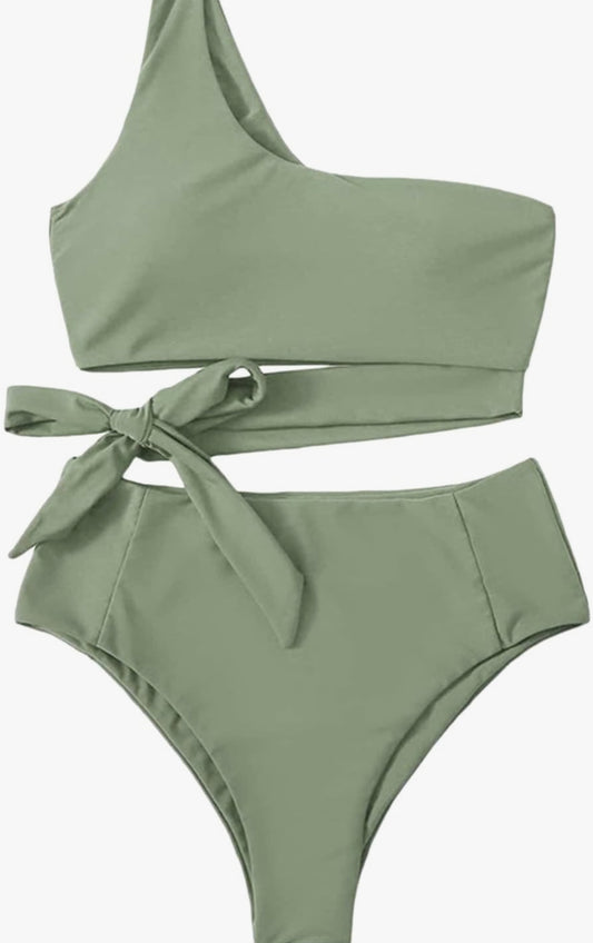 European Olive Colour Women's Sexy High Waist Bikini Ruffle