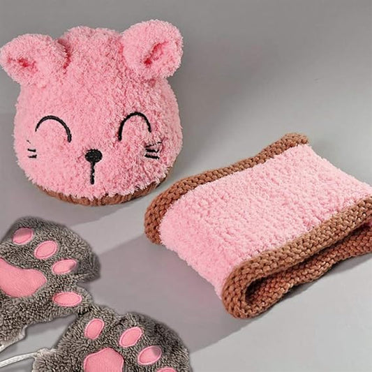 Knitted Baby Hat Scarf Glove Sets for Toddlers, Winter Beanie hat, Fluffy Neck Warmer Hats and Gloves 1-4 Years