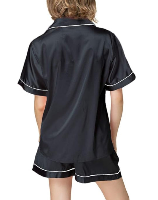 Ladies Satin Button Down Short Sleeve Pajama Set with Shorts
