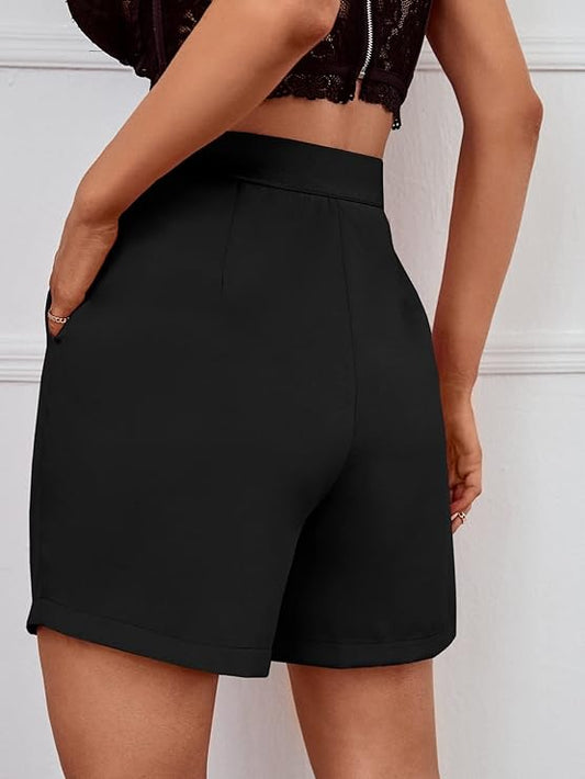 Women's High Waisted Pleated Wide Leg Shorts
