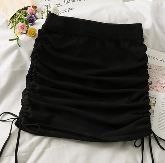 Short Ruched Ribbed Knit Skirt