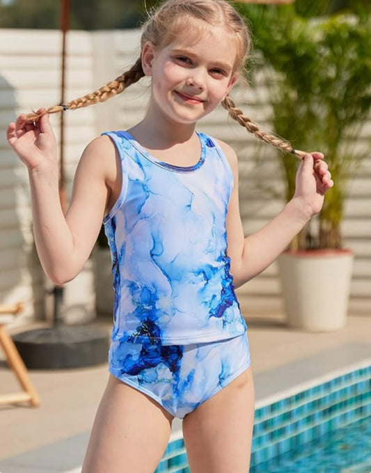 Girls Swimsuits 3 Piece Tankini Bathing Suit Set Cute Bikini Swimwear with Cover Ups Beach Skirt