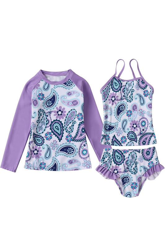 GRACE KARIN Girl Rash Guard Swimsuit Long Sleeve 2-Piece Swimwear Set