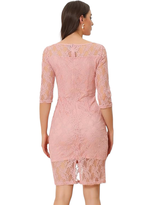 Allegra K Lace Dress for Women Elegant 3/4 Sleeve Square Neck Bodycon Cocktail Dress