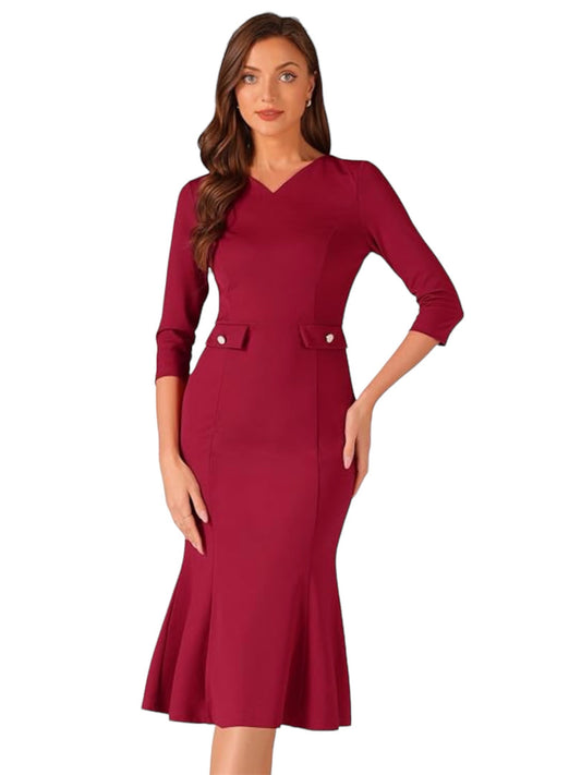 Allegra K Vintage Bodycon 3/4 Sleeve Fishtail Dress