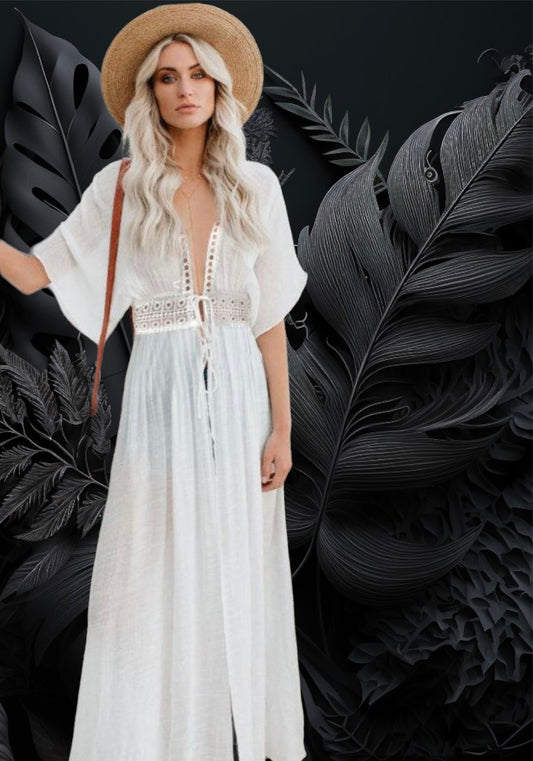 Sundress Women Hollow French Elegance Halter Lace Long Beach Dress