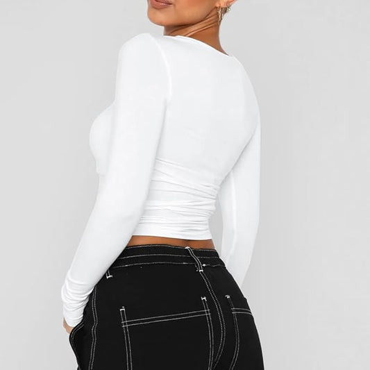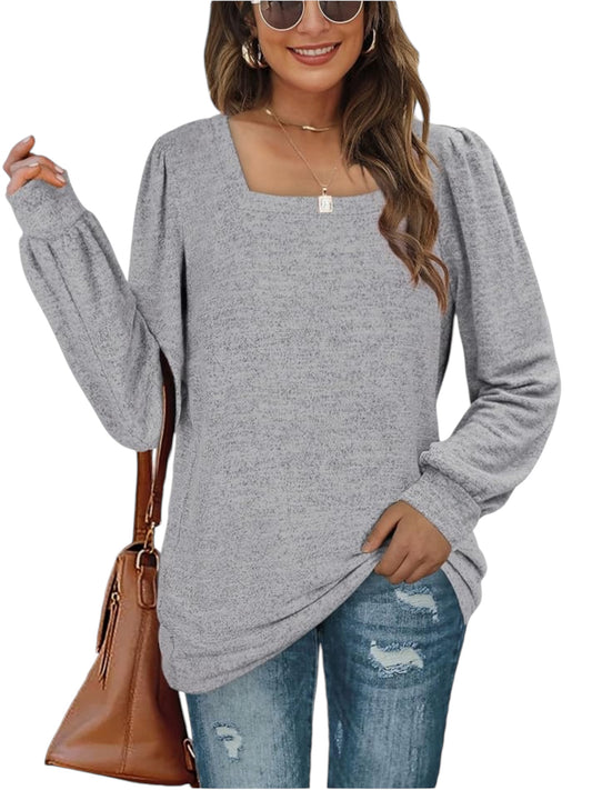 Ladies Square Neck Long Sleeve Tops Loose Fit