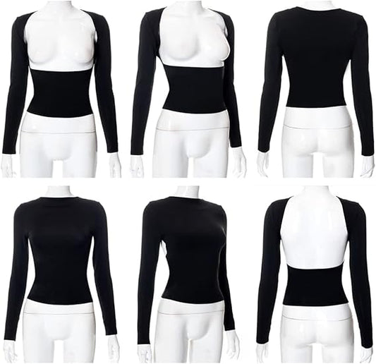 Women Sexy Basque Off-Shoulder Bustier Corset Top with Long Sleeve