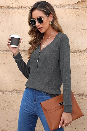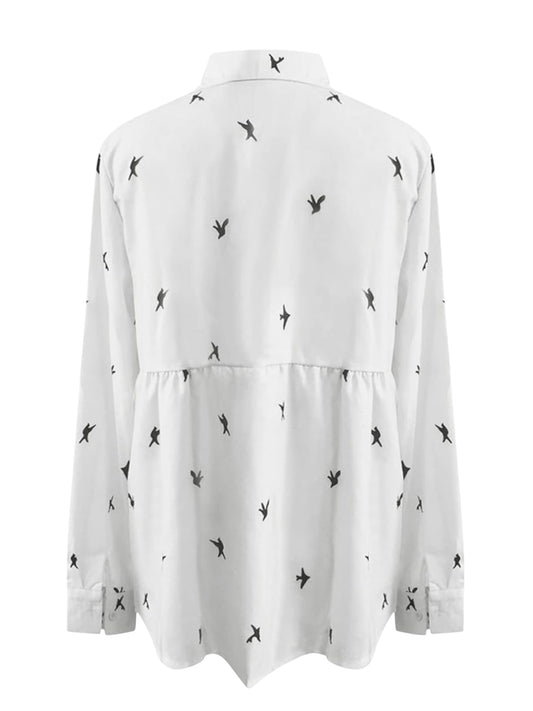Women's Long Sleeve Top, Blouse Comfort Print Button Shirt Style Linen