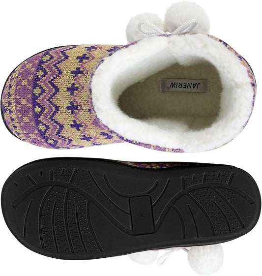 JANERIW Knit Warm And Cozy Memory Foam Non-Slip Soft Indoor And Outdoor House Shoes