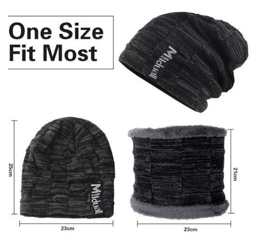 Milduall fleece lined slouch beanie and fleece snood set