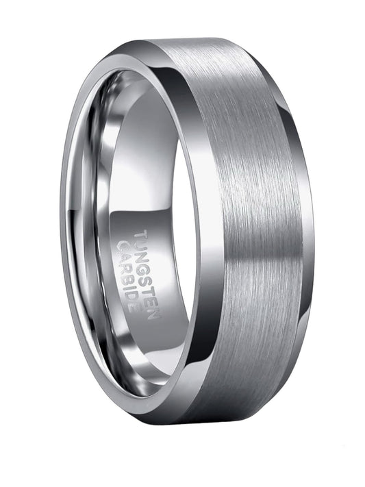 Tungsten Ring for Men and Women brushed finish with beveled edge.
