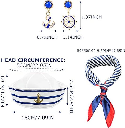 Ladies 3 piece Nautical hat, scarf and earrings set fancy dress