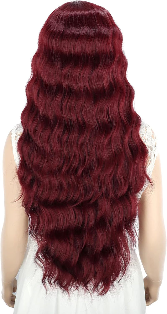 YEESHEDO Long Wavy Synthetic Wine Red Wig with Fringe
