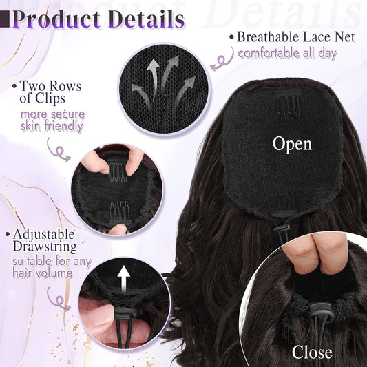 RUWISS Drawstring Wavy Curly Ponytail Extension (Black/Brown)