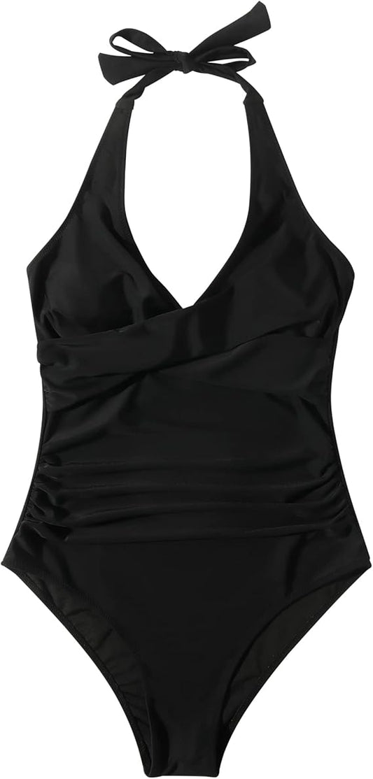 One Piece Swimsuit Women Tummy Control One Piece Swimsuits High Waisted Halter Bathing Suits Push Up Swimwear