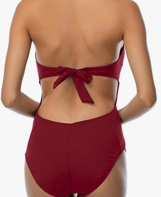 Burgundy Red One Piece Backless Sexy Swimsuit