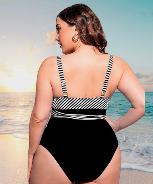 Striped Sports Scoopback Bathing Suit with Removable Foam Cups